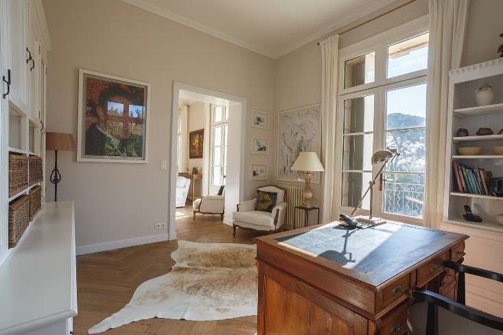 La Roque has a floor area of approximately 450 sqm over 4 levels with most rooms enjoying views of the gardens. The garden/2 large terraces/ and pool are south facing. Most of the windows in the house retain their old world charm in design. However, the glass is not only double glazed but also the tech behind the glass is similar to that found in skyscrapers where the heat from the sun is reflected to a large degree. Very useful in those hot summer months.